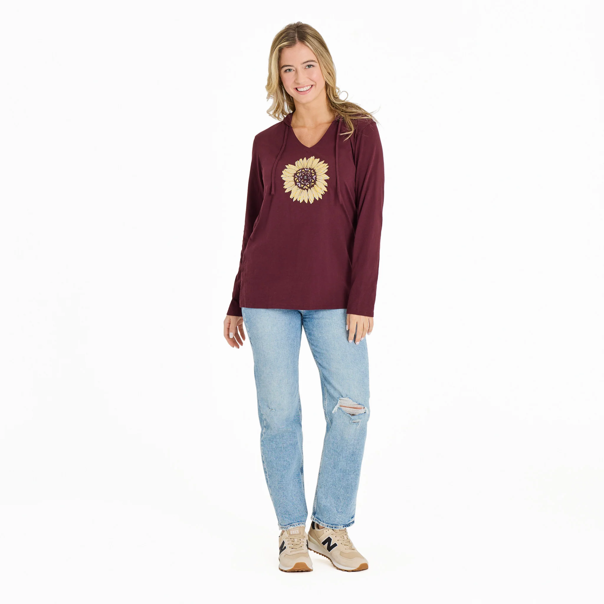 Women's Detailed Sunflower Long Sleeve Crusher-LITE Hooded Tee